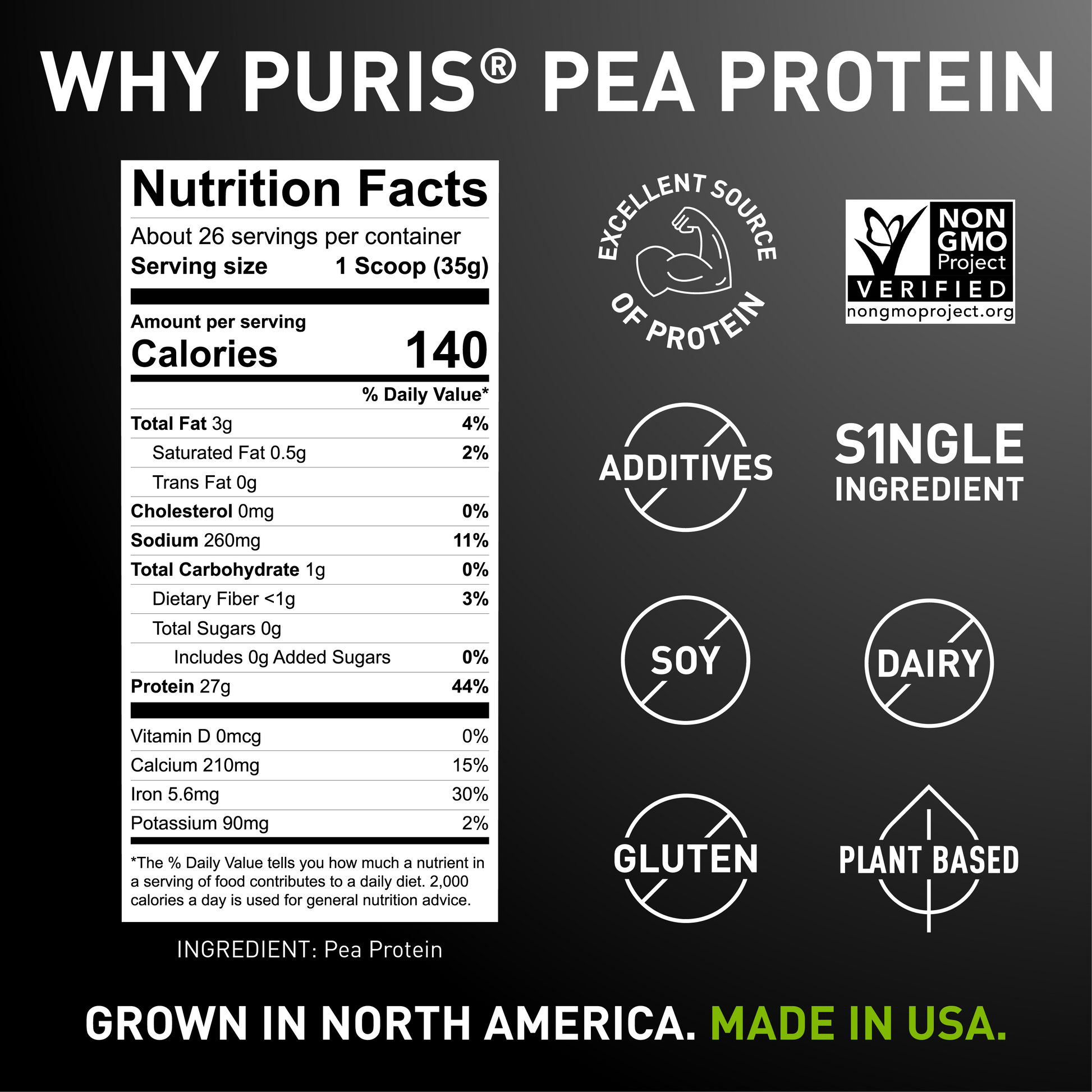 • PURE, SINGLE-INGREDIENT PROTEIN – Made from non-GMO yellow peas with no fillers or additives.